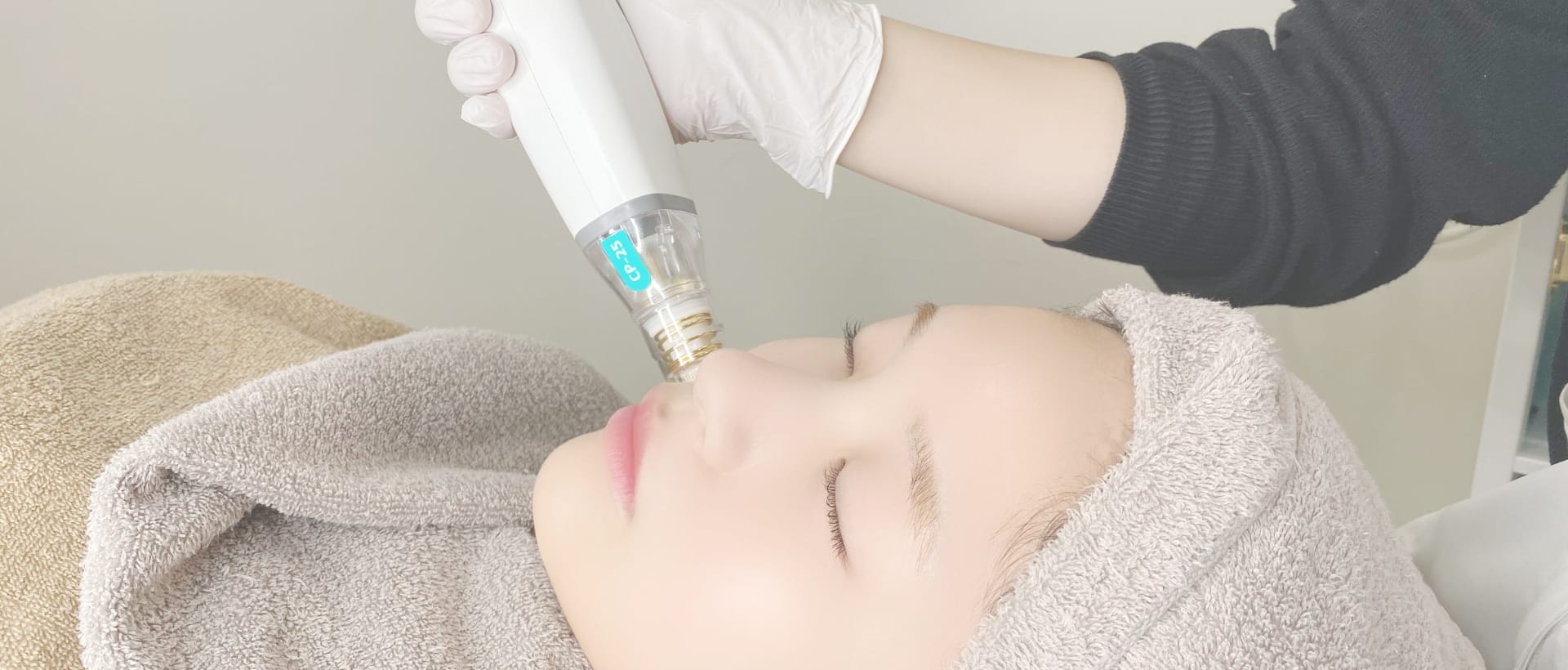 ポテンツァには、ドラッグデリバリー用のチップ(CPチップ)だけでなく、肝斑や赤ら顔に特化したチップ(Sチップ) 、針を使わないたるみ治療用のダイヤモンドチップ など、多様なチップがあります。お客様の肌の凹凸の深さや悩みの種類に応じて、最適なチップとRF出力を使い分けられる技術と知識が、結果の満足度を左右します。