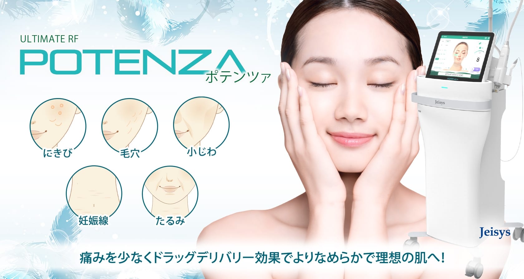 ポテンツァのダイヤモンドチップを使用したたるみ・タイトニング治療は、針を使わないノンニードルタイプでダウンタイムがほとんどなく、ポテンツァのお試しとして最適な強力な集客フックです。