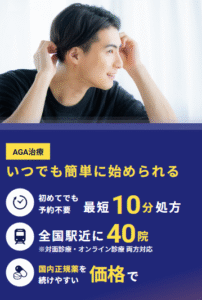 多くの人がAGA治療を受ける際には、クリニックへの通院が他人に知られたくない、または人に会わずに医師の診察を受けたいと考えています。プライバシーを重視するクリニックでは、他人の目を気にせずに悩みを相談し、治療を受けることができます。