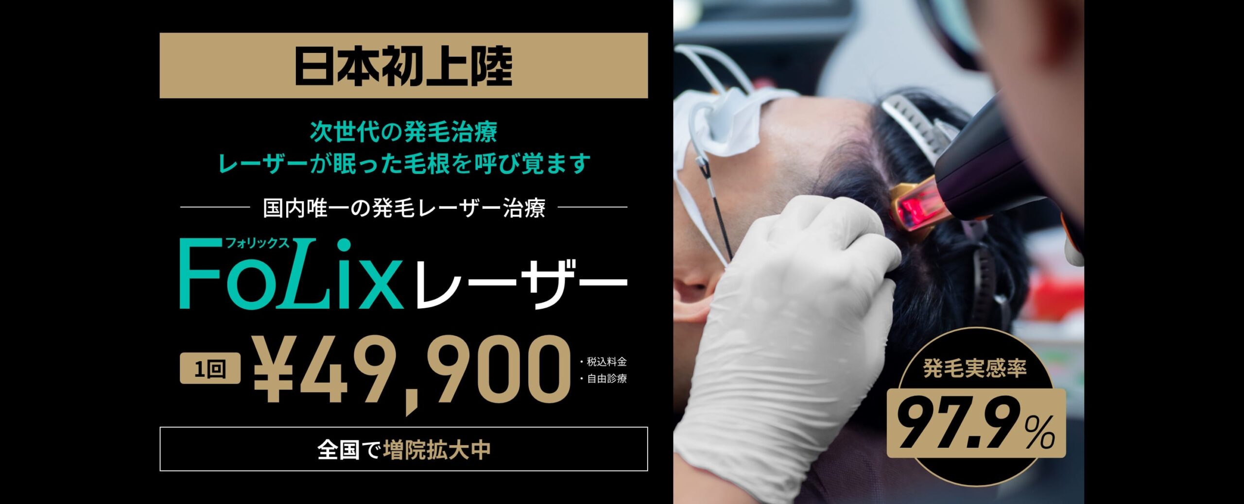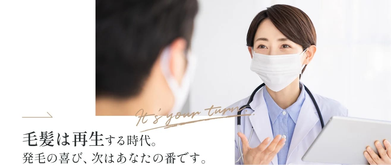 約8万人の治療実績を持つドクターチームによる、オーダーメイドの治療プランが強みで、発毛実感率99.9%という驚異的な実績を誇ります。
